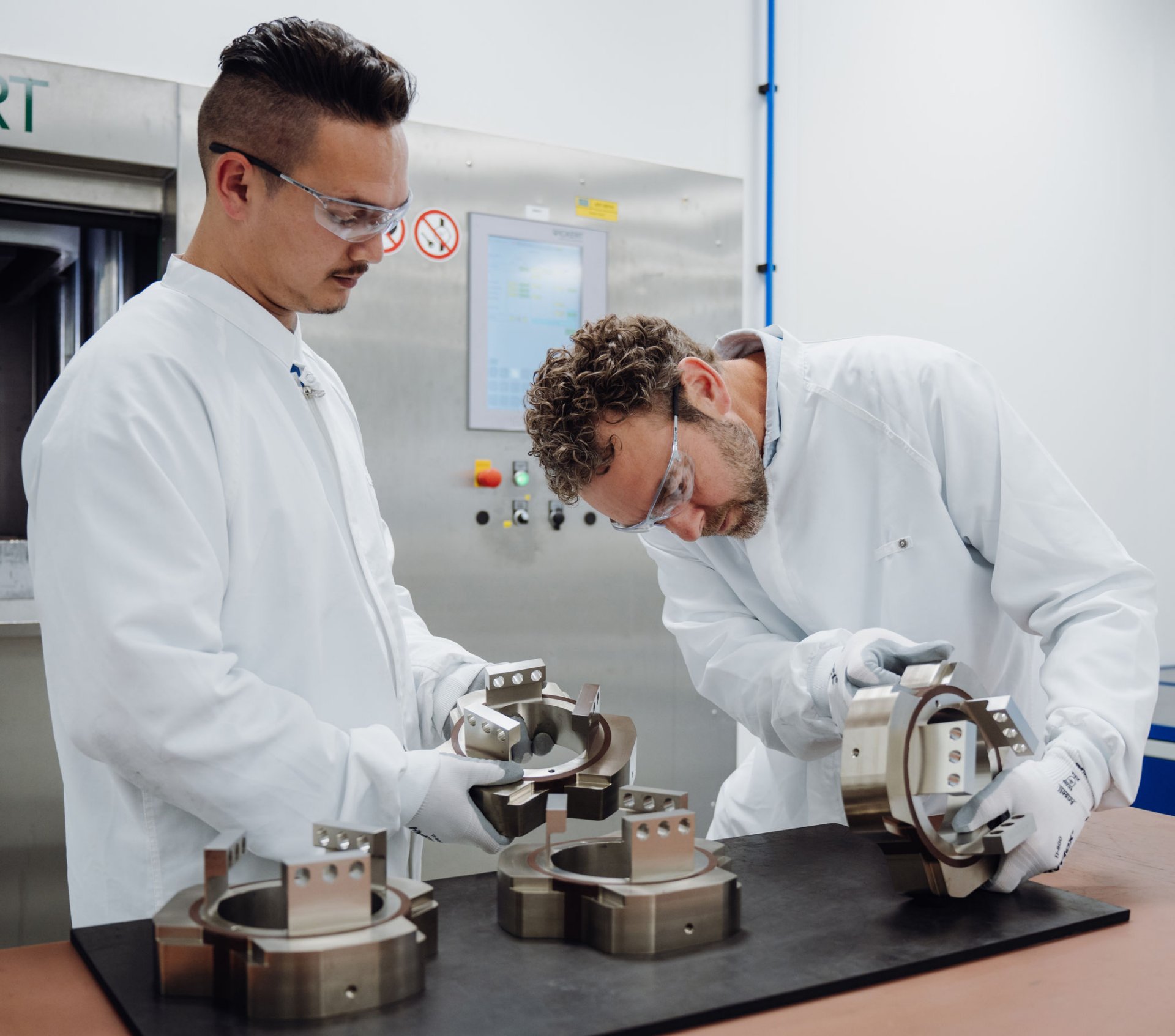 In our cleanroom, equipped with an automated washing line and ultrasonic technology, we clean both single items and large series according to both Grade 2 and Grade 4 standards.
